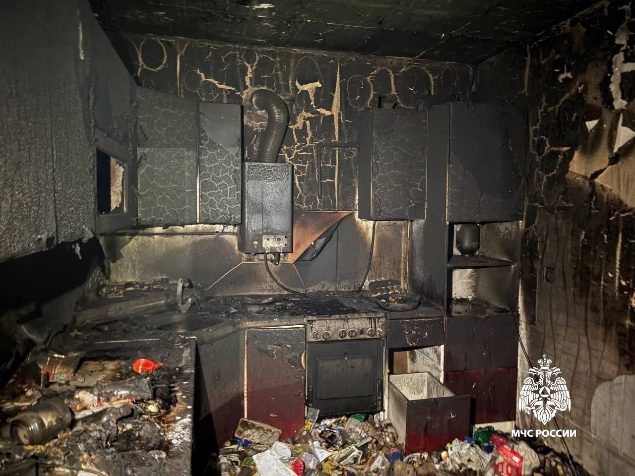 Огонь уничтожил кухню и повредил отделку соседних комнат. Хозяйка отравилась дымом и была госпитализирована.