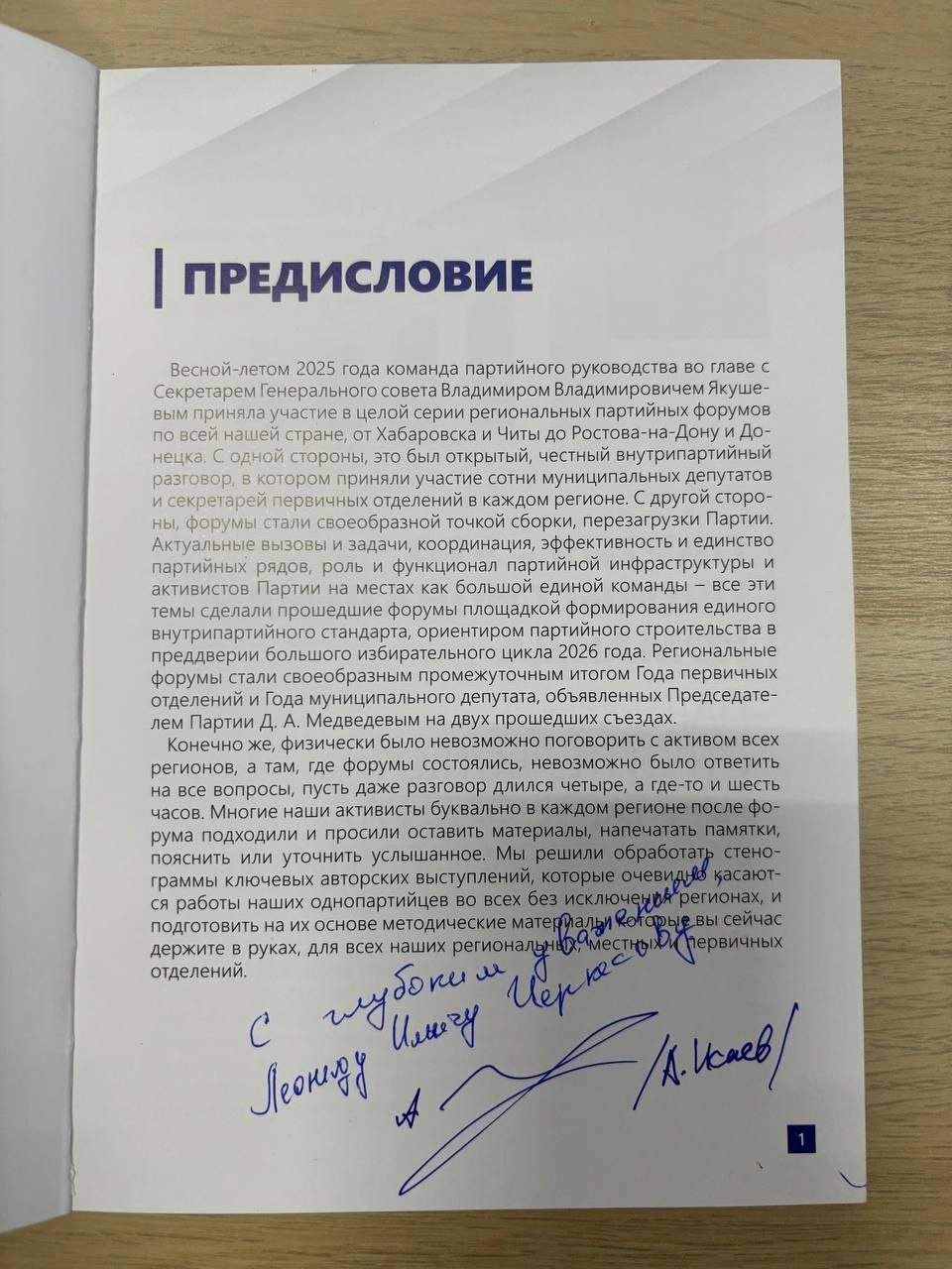 Но дело, конечно, не только в этом. Эта книга родилась из живого общения. Из той самой серии региональных форумов 2025 года, где честно и открыто говорили о будущем Партии. Это была настоящая «точка сборки», после которой чувствуется новый импульс.