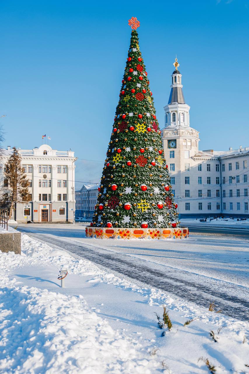 Наша главная новогодняя чебоксарская красавица — 25-метровая ель на Красной площади — представляет Чебоксары на всероссийском конкурсе в номинации «Ёлка России в крупном городе».