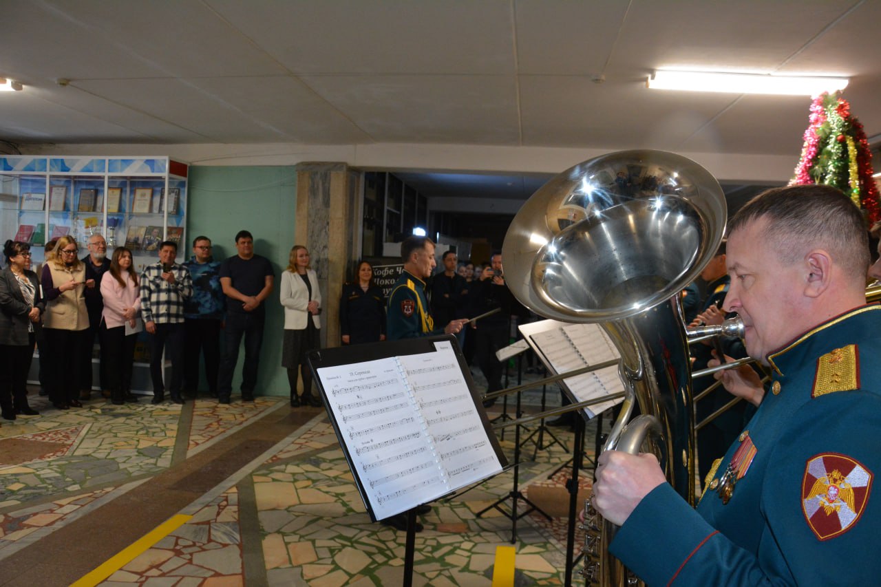 Музыканты специально приехали поздравить журналистов с праздником и порадовать своим творчеством. Оркестр под управлением старшего прапорщика Вячеслава Иванова исполнил в фойе Дома Печати композиции, известные меломанам разных поколений: «Служить России», серенада для трубы с оркестром Виктора Шепелева, «Королева красоты», «Рок под бой часов».