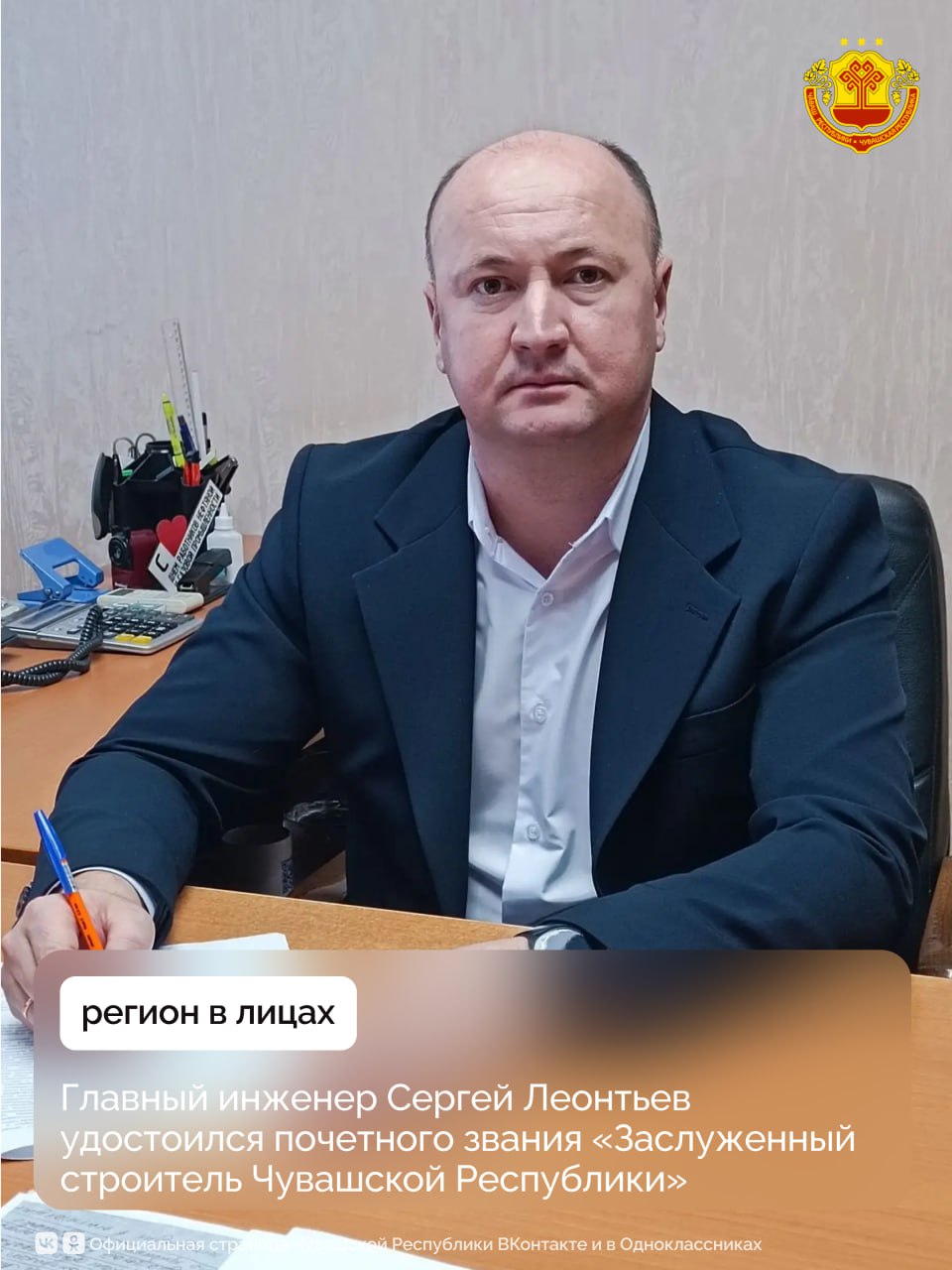 Глава Чувашии Олег Николаев присвоил почетное звание «Заслуженный строитель Чувашской Республики» Сергею Леонтьеву, главному инженеру филиала АО «Газпром газораспределение Чебоксары» в столице республики.