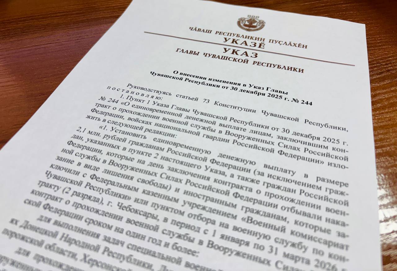 Глава Чувашии Олег Николаев усилил меры поддержки участников СВО. Принято решение о повышении региональной единовременной выплаты контрактникам.