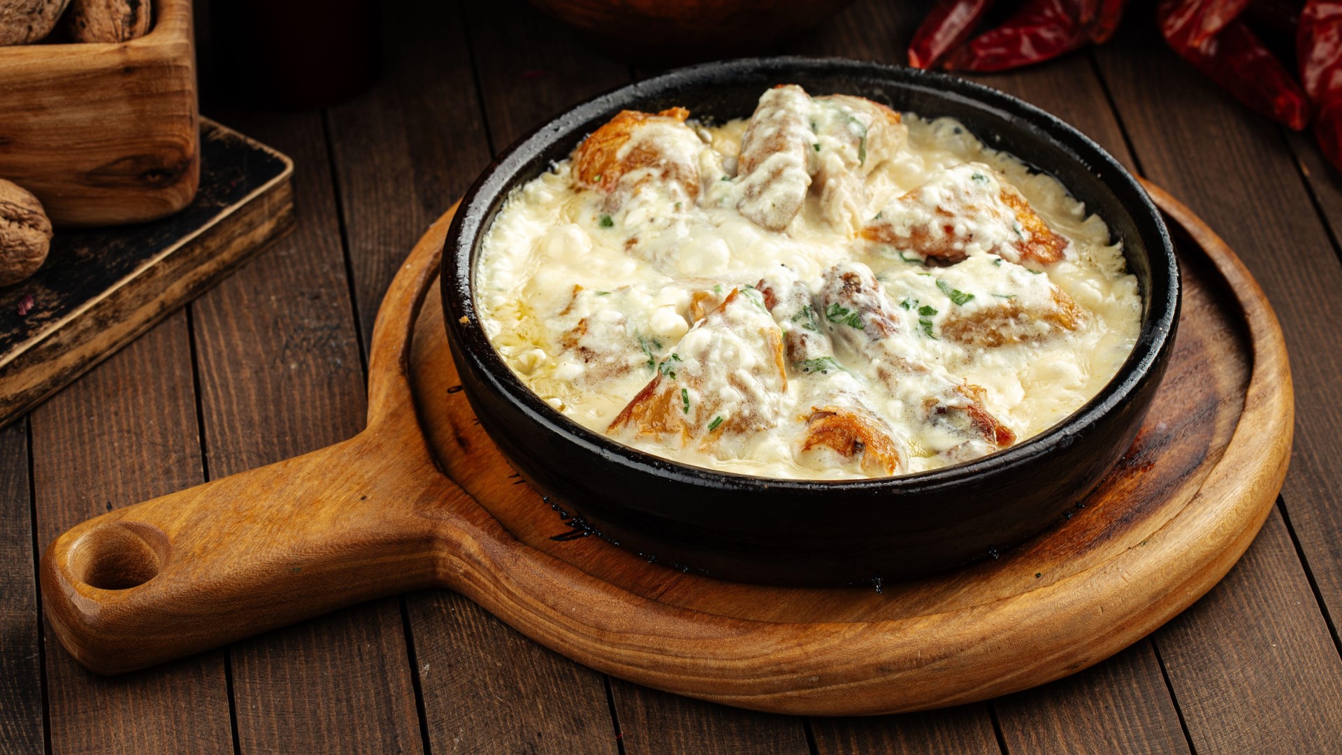 Любители восточной кухни точно будут в восторге от этого грузинского блюда. Чкмерули можно подавать как на обед, так и на ужин. А домашние сами сбегутся на аромат из духовки.