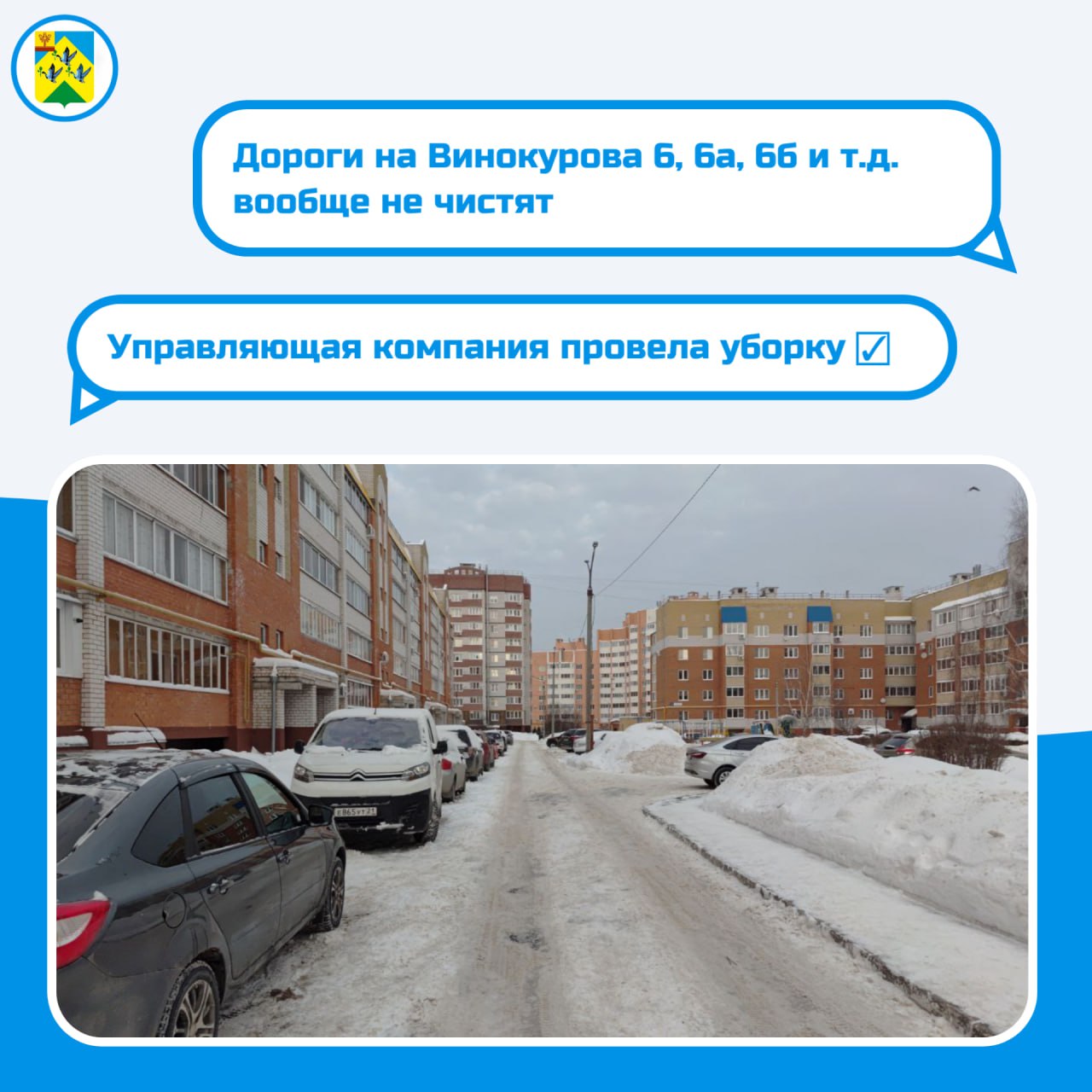 Сотрудники администрации ведут регулярный контроль уборки снега: проводят выезды на место, доводят информацию до управляющих компаний и подрядных организаций, фиксируют нарушения.