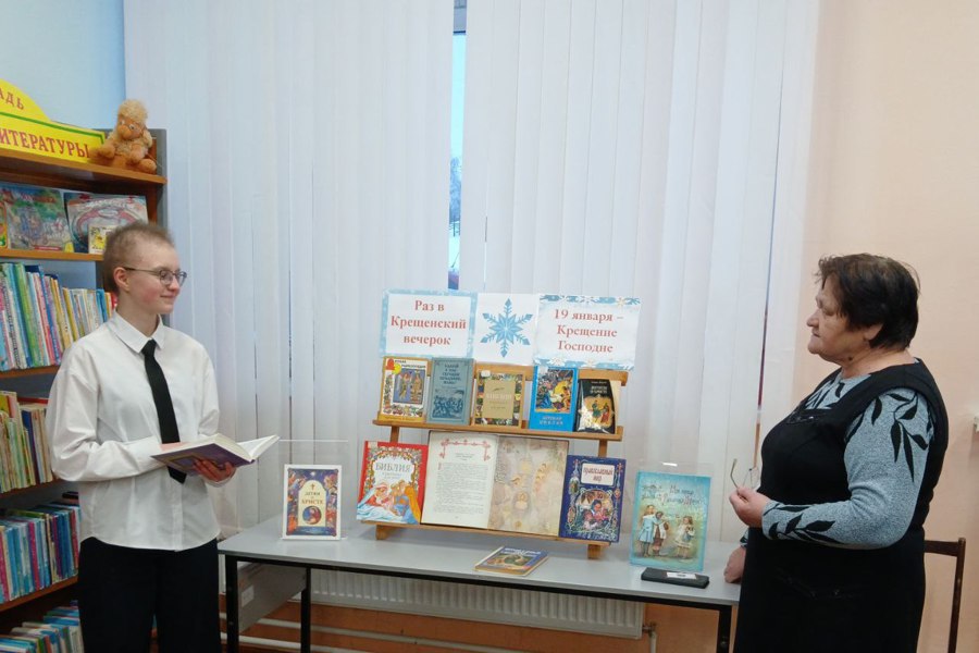 В центре внимания была книжная выставка с поэтичным названием «Раз в Крещенский вечерок...». Председатели ТОС Нина Иванова и Светлана Середа просто и искренне рассказали о праздниках Рождества и Крещения: что мы на самом деле отмечаем, когда и какие у этих дней особенности.