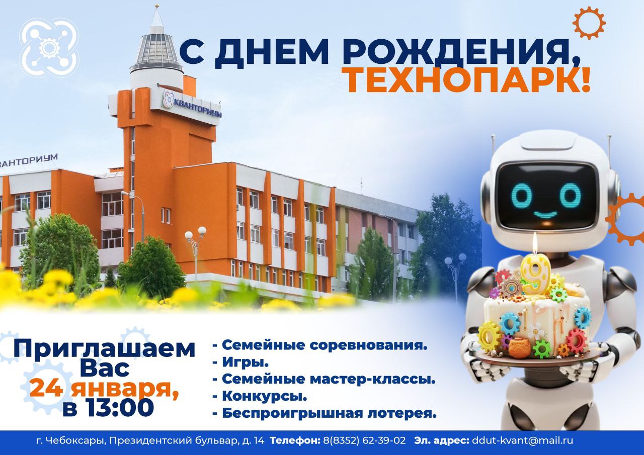 Отличная новость! Детский технопарк "Кванториум" приглашает провести выходной день весело, интересно и с пользой, погрузившись в мир технологий и творчества - в честь Дня рождения 24 января в 13.00 состоится семейный праздник «Технобатл»!