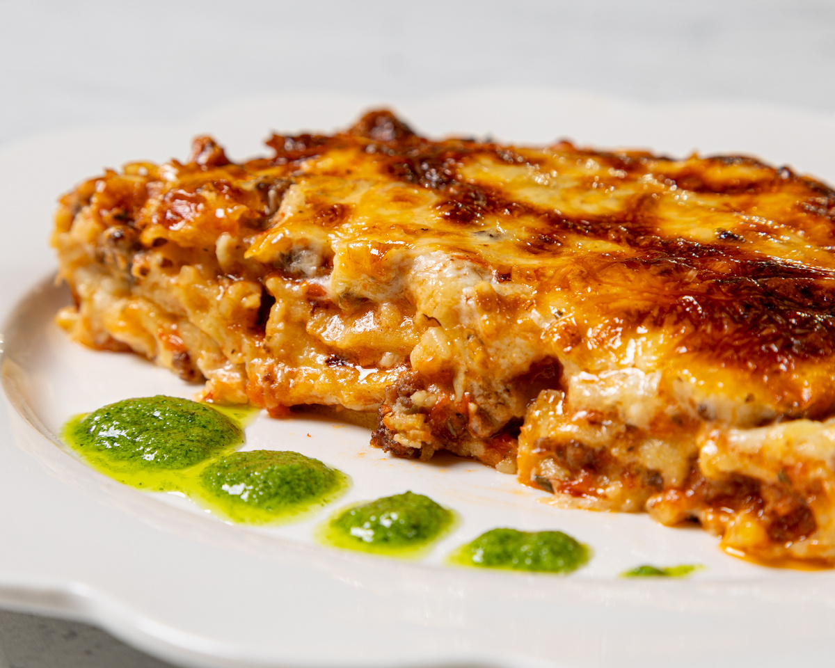Долгое томление мяса с овощами превращает их в бархатистое рагу, а бешамель с пармезаном создаёт легкую текстуру без тяжести.