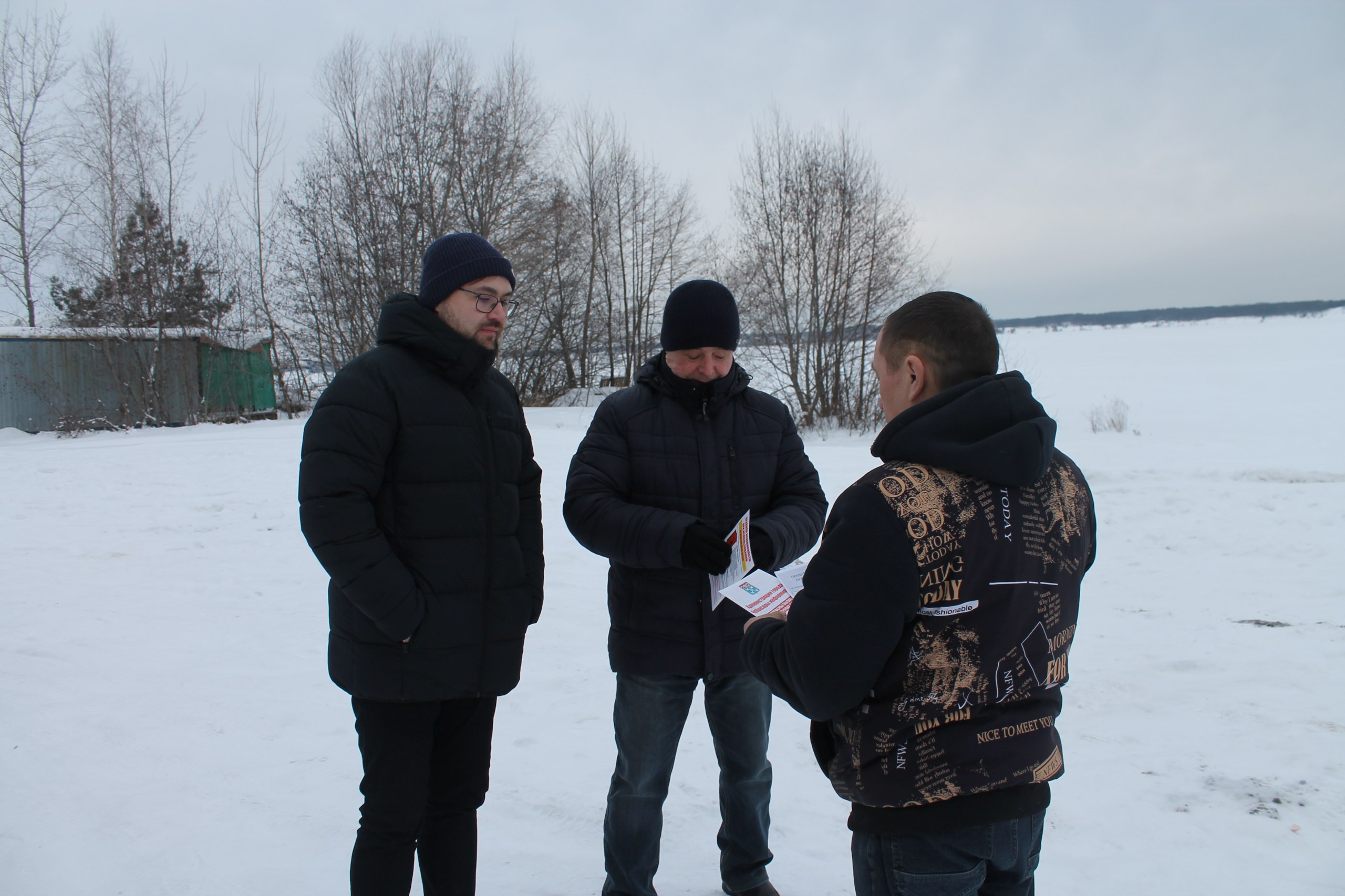 В целях предотвращения несчастных случаев сегодня начальник штаба по делам ГО и ЧС Калининского района Гулмирзо Курбанов и квартальный уполномоченный управы по Калининскому району Никита Прокопьев провели профилактический рейд на Казанской набережной. Специалисты разъясняли автолюбителям, что нельзя на машинах заезжать на Волгу. Горожанам раздали памятки, предупредив их об опасности на льду, даже несмотря на то, что он сейчас толстый.