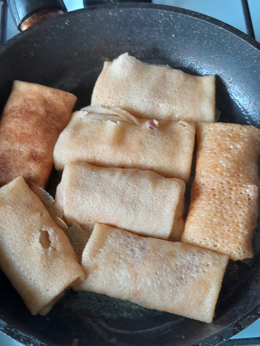 Весь процесс можно представить как плавный сценарий: тесто взбилось — блины подрумянились — начинка встретилась с сыром — и получилось простое, но очень приятное блюдо, которое легко повторить в любой день. Финал — горячие конвертики с ароматной парной дымкой и бесценная мысль о том, что домашняя кухня может быть простой, уютной и не перегруженной рецептами.