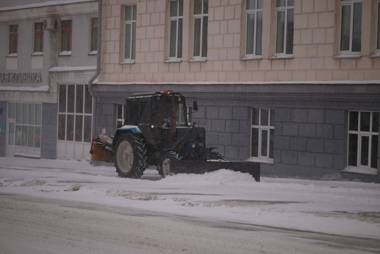 - Продолжается работа по обработке противоположными материалами и вывозу снега с городских улиц.