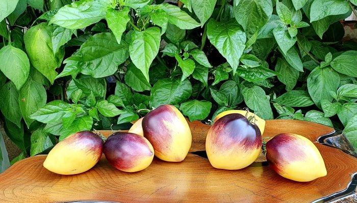Плоды массой 100–250 г подходят для цельноплодного консервирования и приготовления соусов, а в свежем виде раскрывают яркость цвета и насыщенность вкуса. Встречаются оттенки от лимонного до золотисто-янтарного внутри, что добавляет блюдам необычный визуальный акцент.