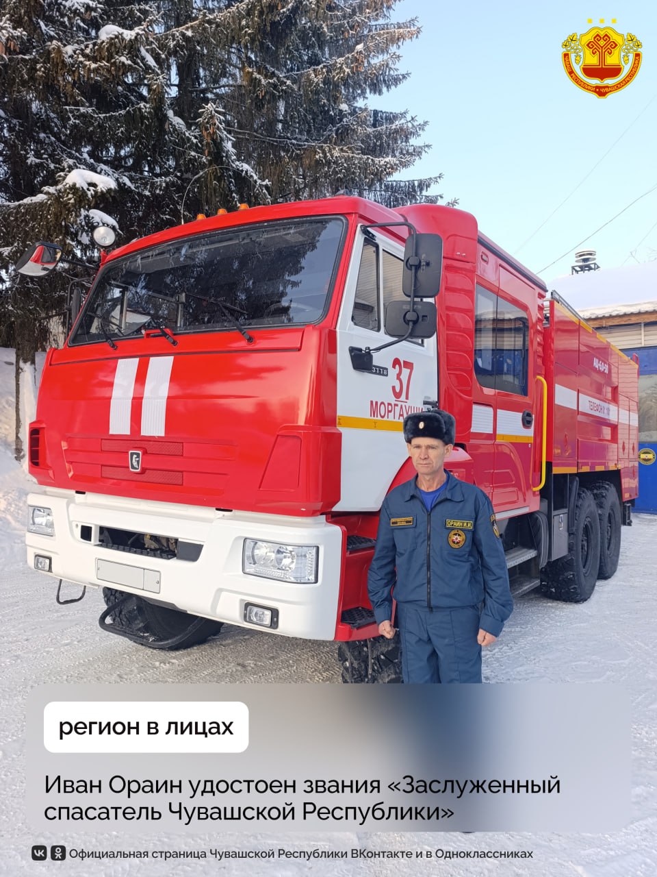 За заслуги в профессиональной деятельности Глава Чувашии Олег Николаев присвоил почетное звание «Заслуженный спасатель Чувашской Республики» Ивану Ораину.