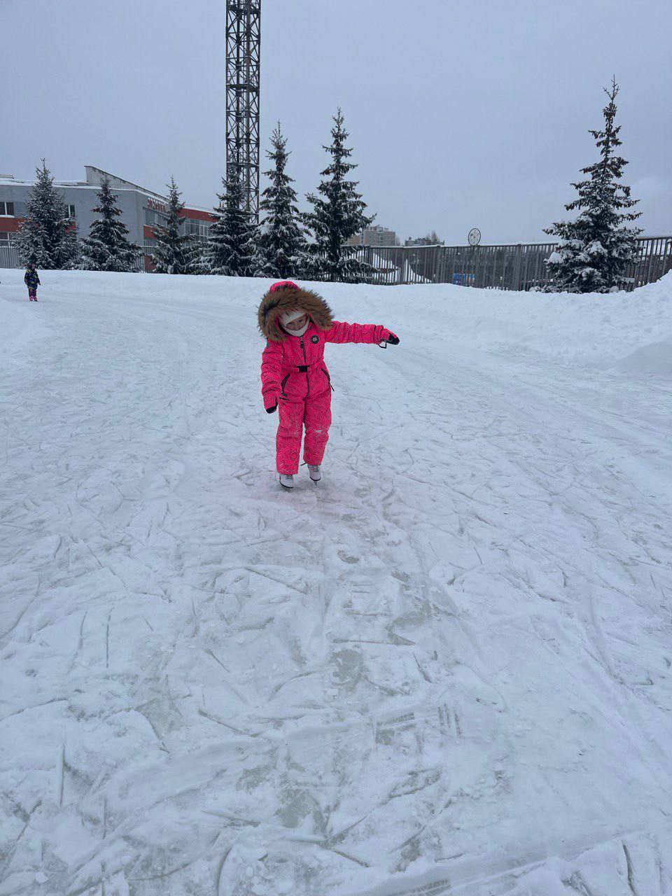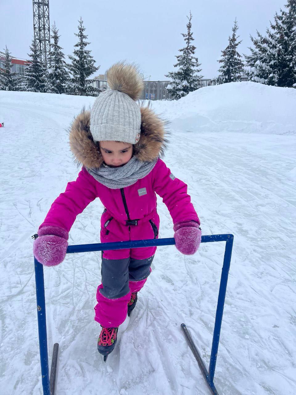 Свежий воздух, весёлая музыка, придавали детям уверенности в первых шагах на льду. Кто- то только учился стоять и кататься на коньках, а кто-то уже уверенно катается.