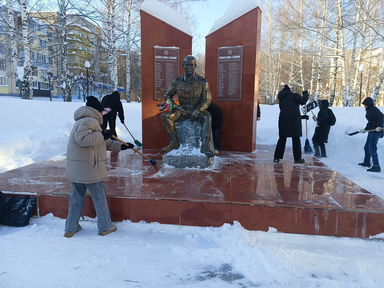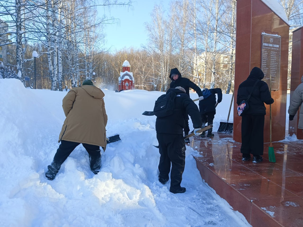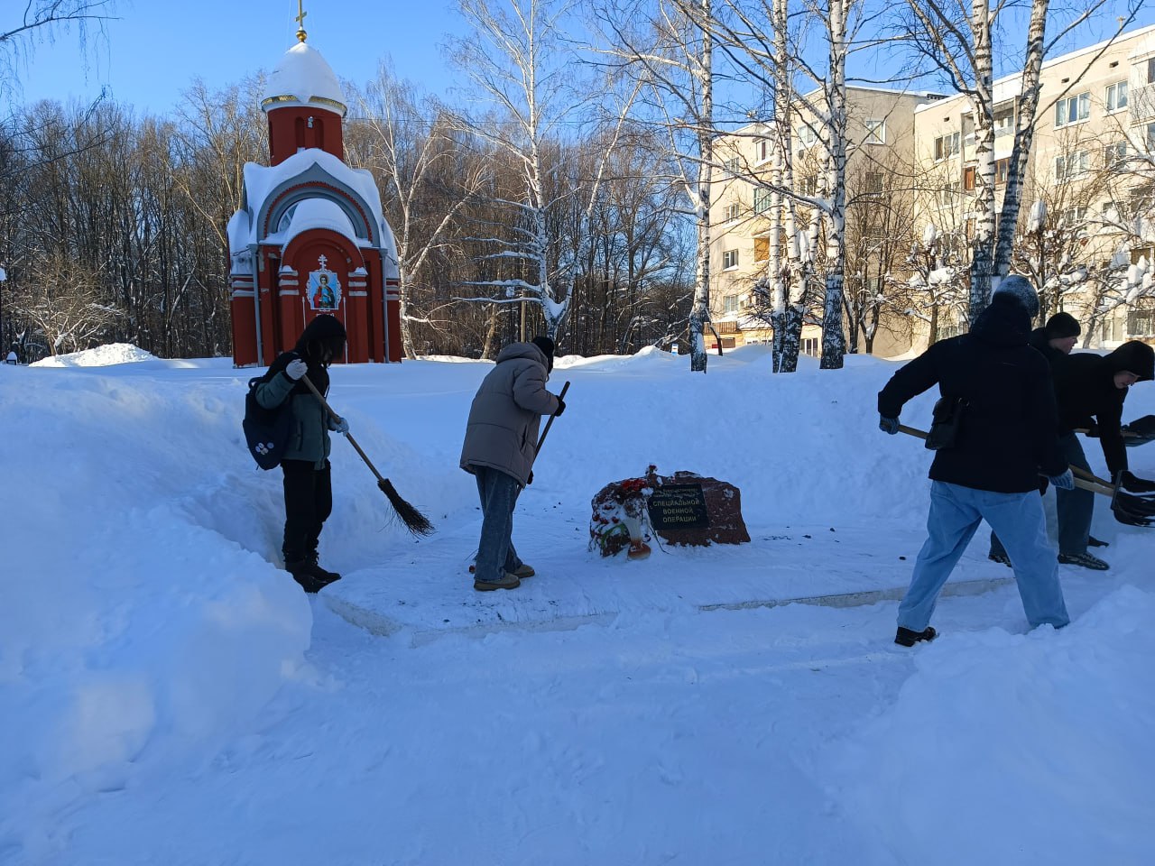 Ребята провели уборку от снега Памятника воинам, принимавшим участие в локальных войнах и военных конфликтах.