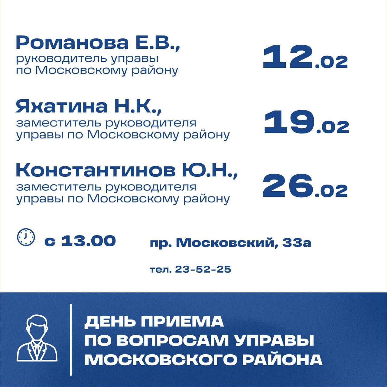 Глава города, начальники структурных подразделений и руководители управ районов проведут традиционные тематические встречи с жителями по личным вопросам.