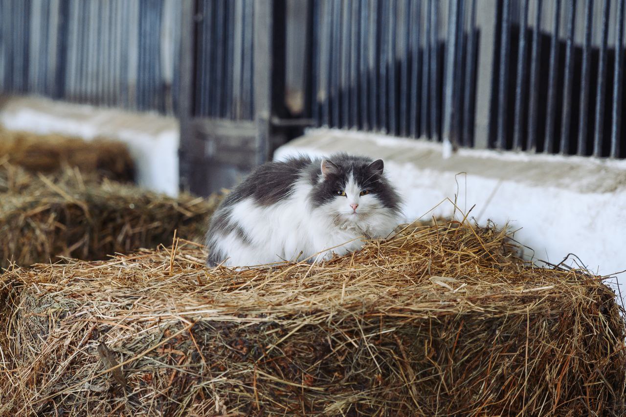 Пушистый котик, обитающий на ферме Чувашского конного завода, желает вам доброго утра и очень продуктивной рабочей недели.