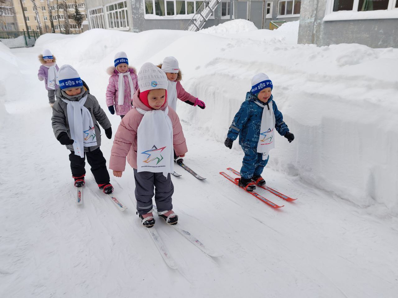 Образовательные учреждения - активные участники данной замечательной инициативы.В детских садах юные спортсмены вовсю осваивают лыжи. Ребята учатся держать равновесие и устраивают свои первые забеги.