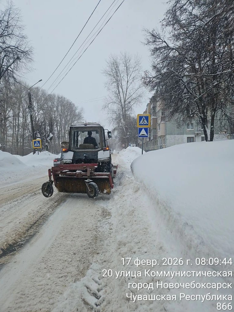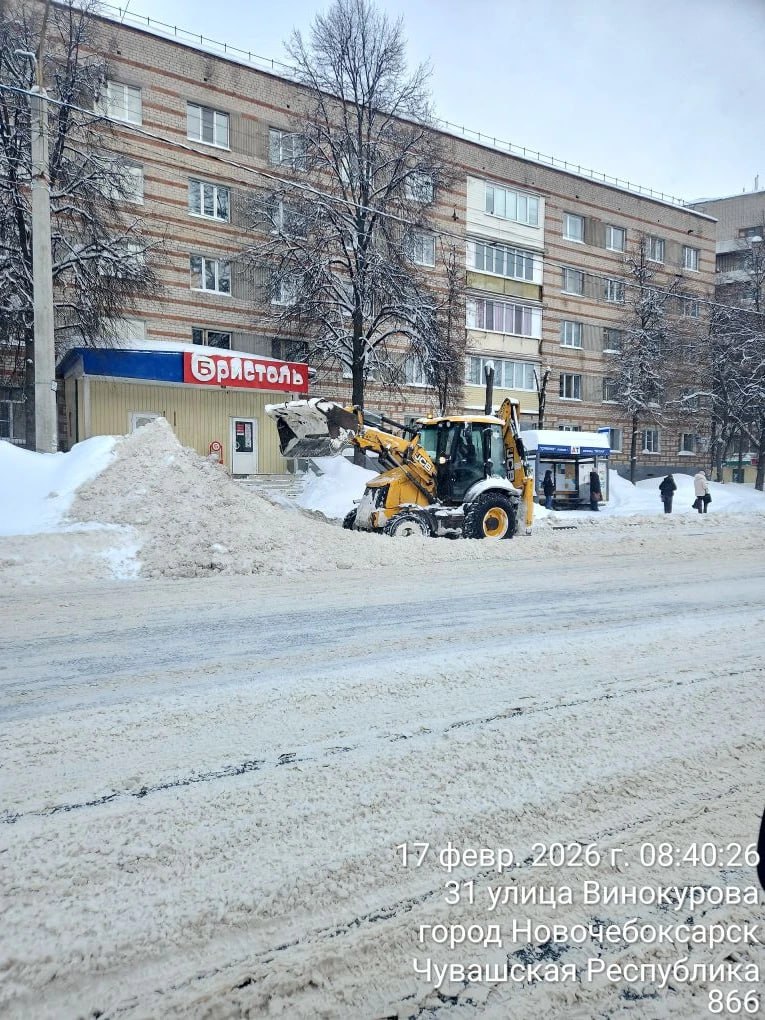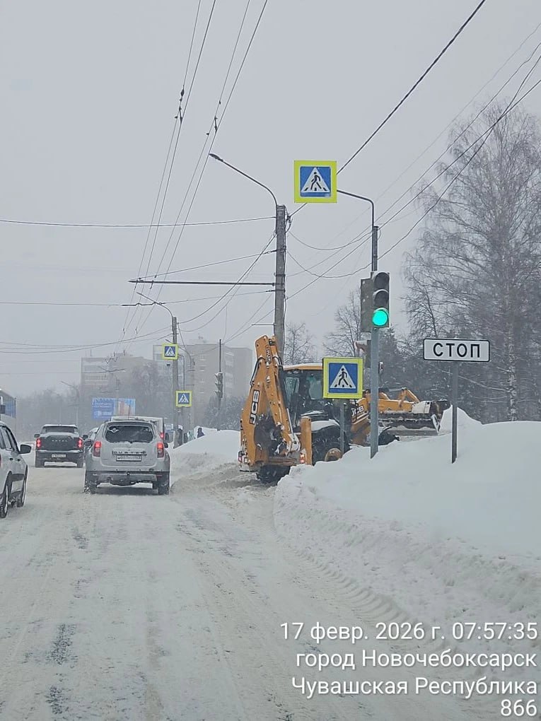 Сегодня на уборке снега задействованы 5 КДМ, ротор, 4 погрузчика, грейдер, 2 МТЗ-щётки, экскаватор-погрузчик, фронтальный погрузчик и дорожные рабочие.