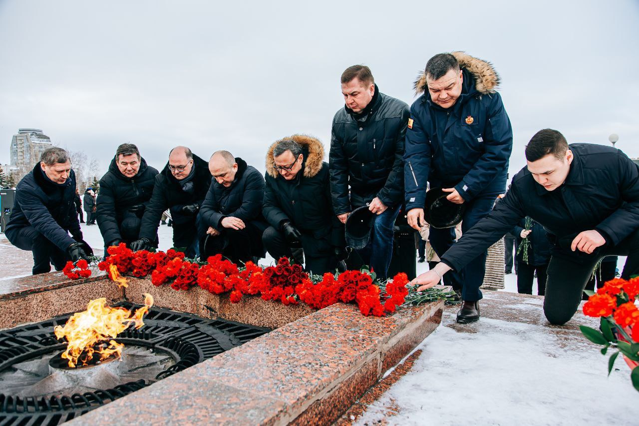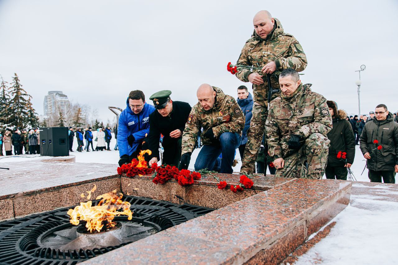 Возложение цветов в Мемориальном комплексе «Победа» стало знаком признательности всем, кто стоял и стоит на страже рубежей Родины.