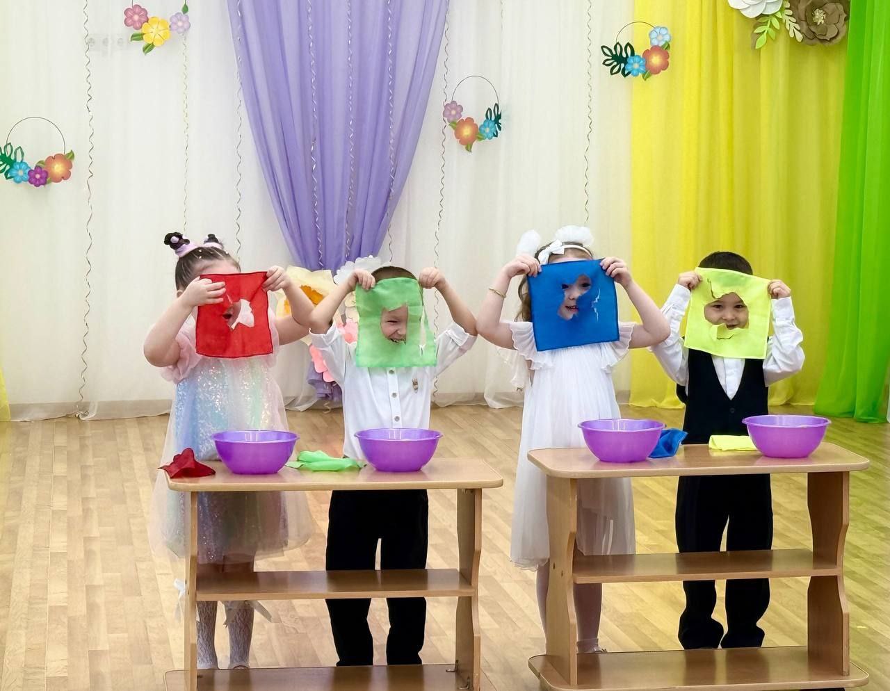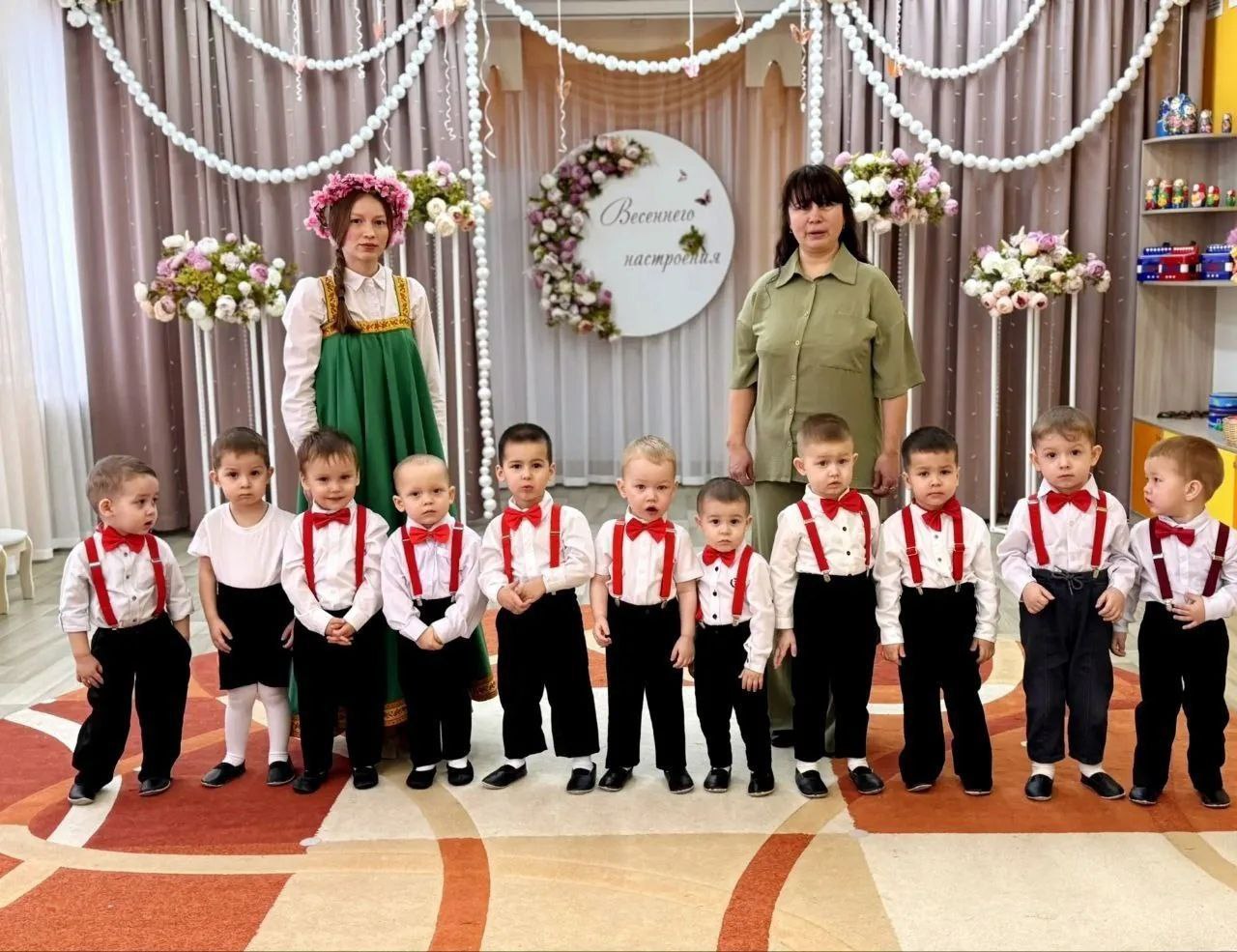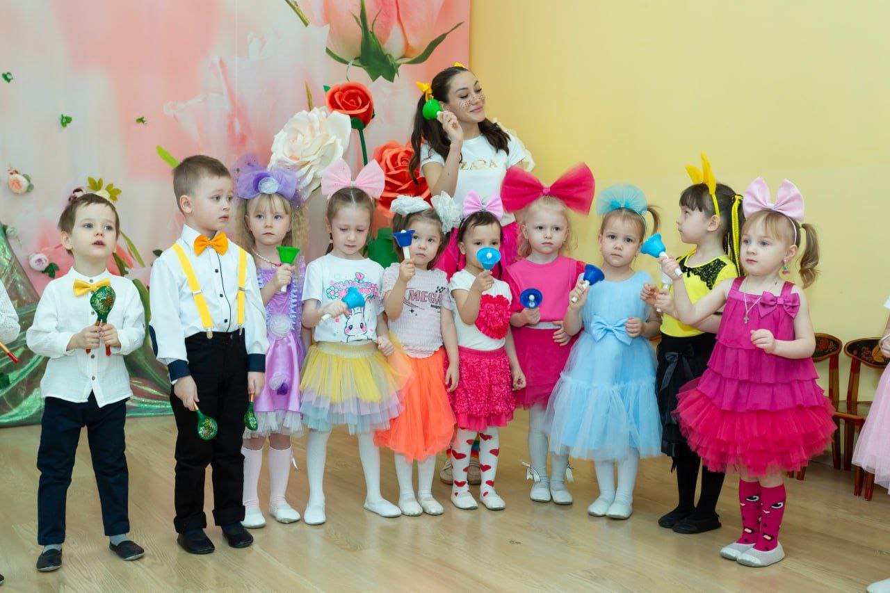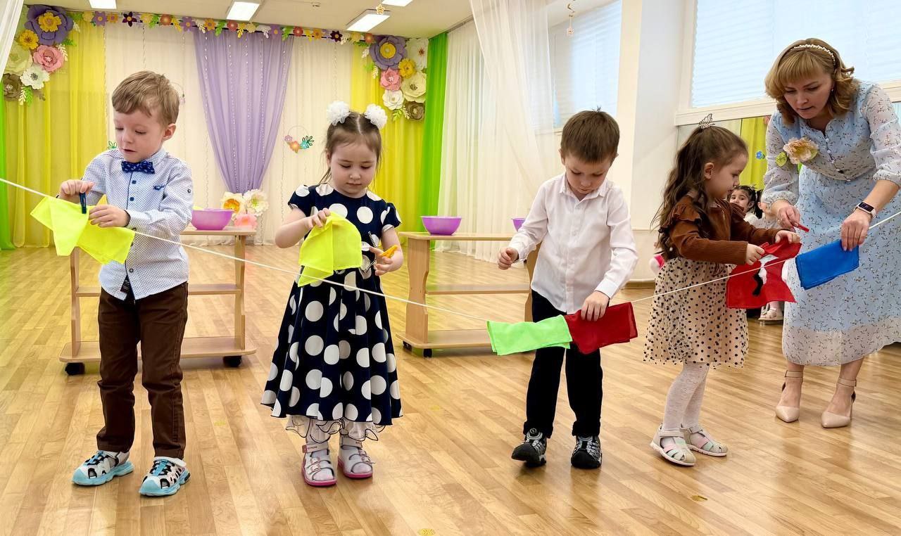 Атмосфера в детских садах наполнена весной, музыкальные залы преобразились яркими украшениями, в холлах оформлены выставки рисунков.