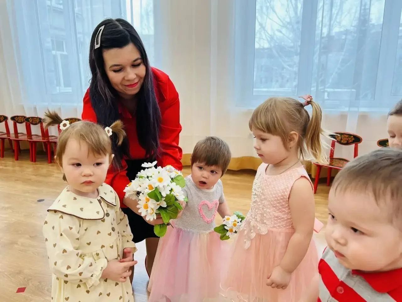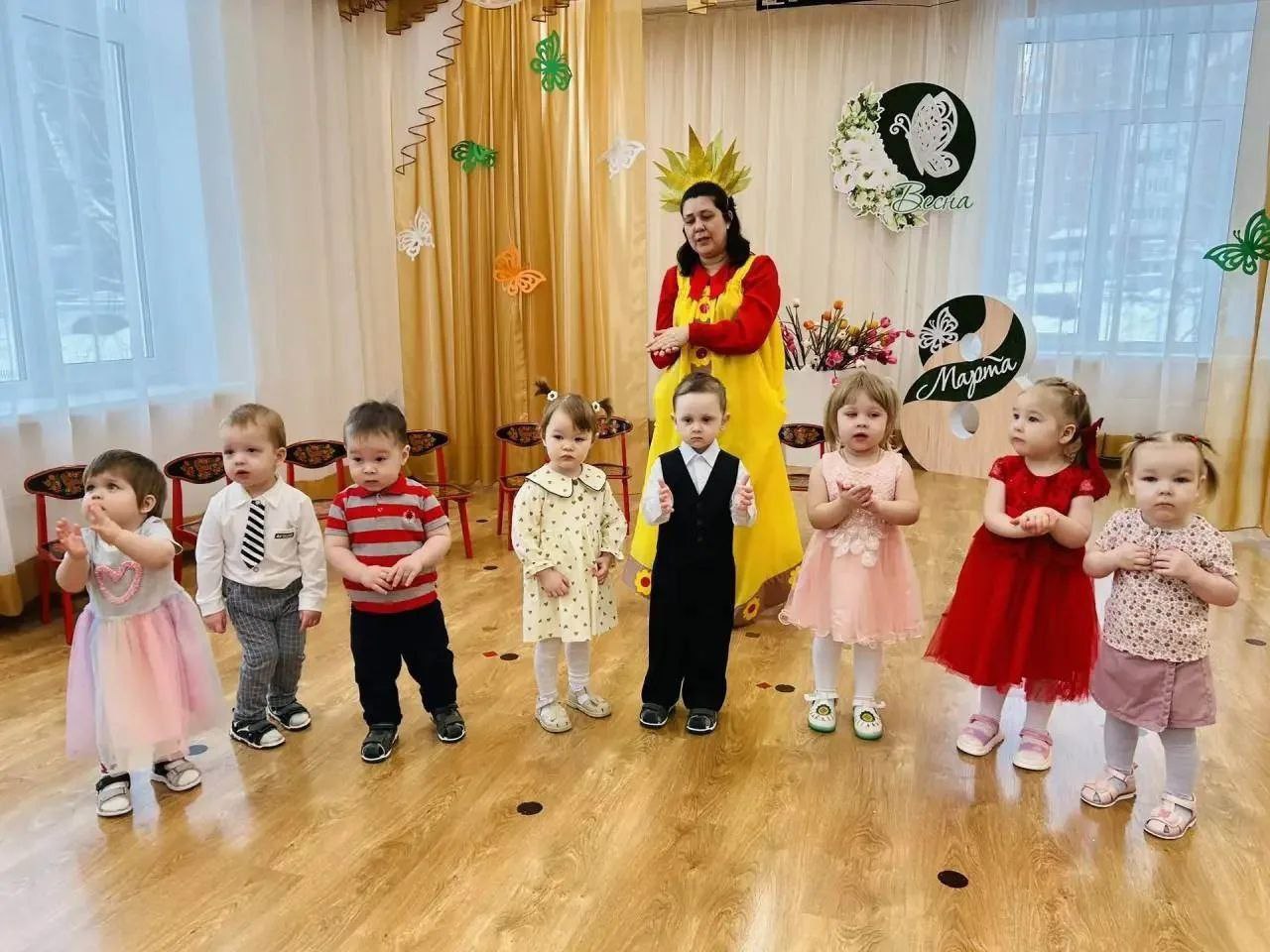 Юные воспитанники детских садов уже начали поздравительный марафон: зажигательные танцы, душевные песни и стихотворения, юмористические сценки - дети и педагоги ответственно подошли к поздравлению мам и бабушек.