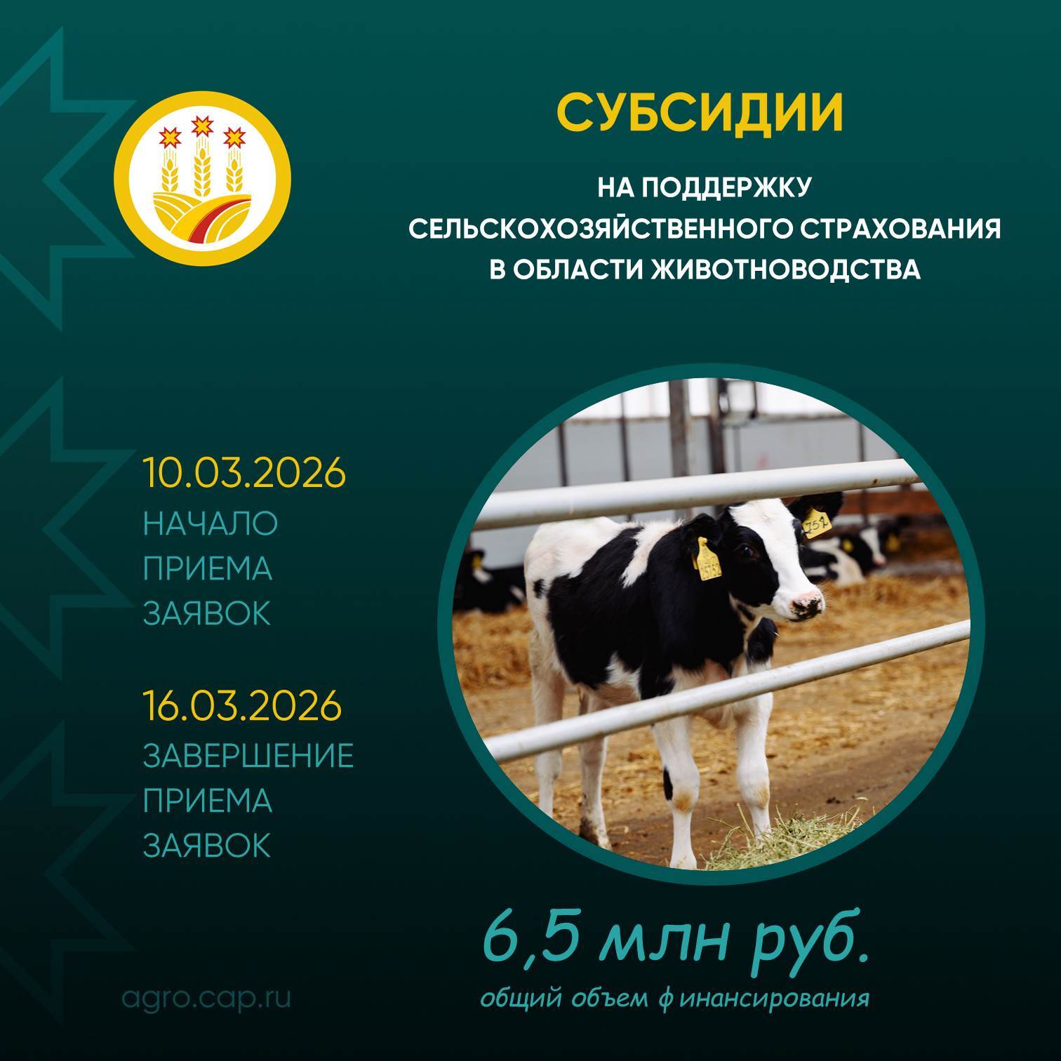 Минсельхоз Чувашии объявляет о начале приема заявок на участие в отборе получателей субсидий на поддержку сельскохозяйственного страхования в области животноводства.
