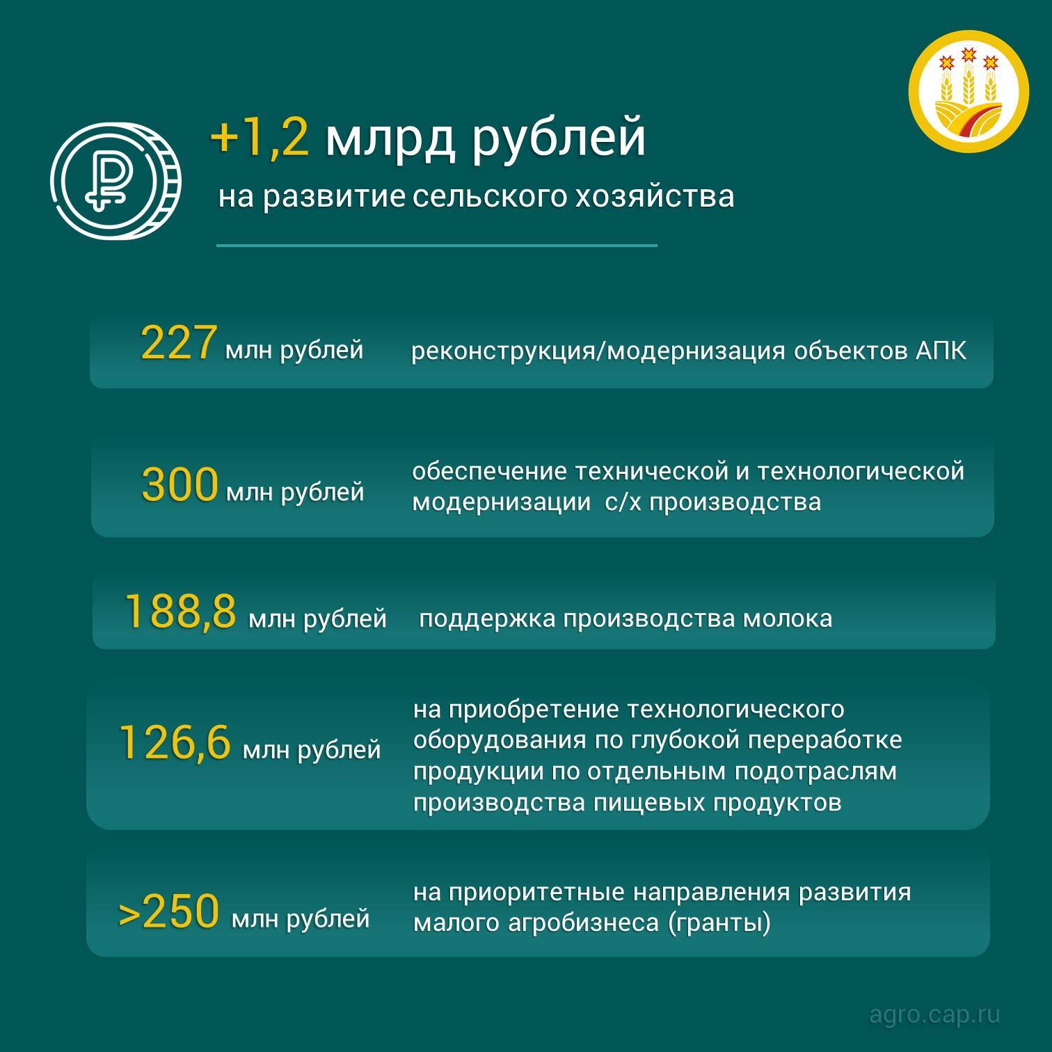 В наших карточках отражены ключевые направления АПК, которые будут дополнительно профинансированы.