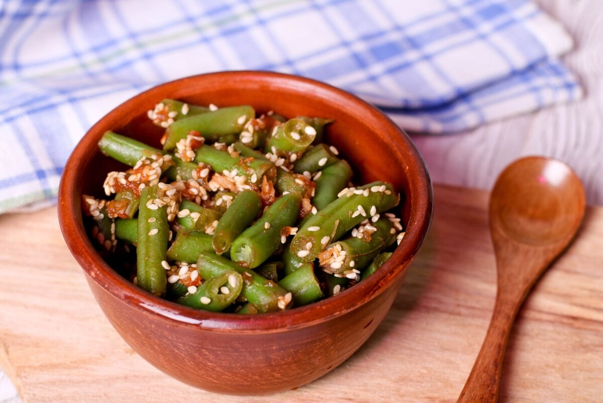 3. В отдельной сковороде обжарьте кунжут до золотистого цвета без добавления масла. Такой метод позволит кунжуту раскрыть свой аромат. На финальном этапе подавайте фасоль, щедро посыпав ее жареным кунжутом — это добавит уникальный хруст и яркий вкус.