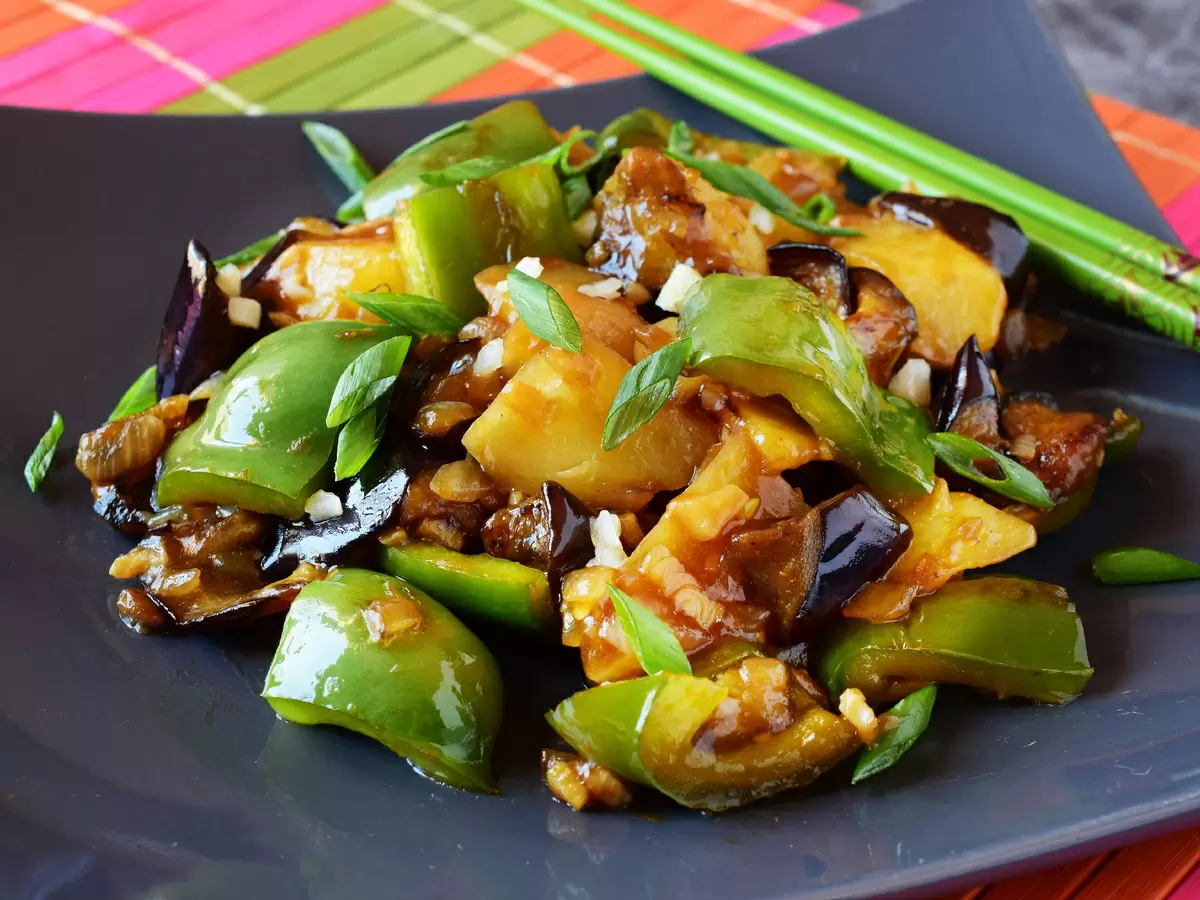 Приготовление овощного блюда китайской кухни способно удивить даже самых взыскательных гурманов. Оно сочетает в себе не только сытность, но и невероятный вкус, даже без добавления мяса. Чарующий процесс обжаривания позволяет получить мягкий баклажан без горечи и картошку, которая не разваливается и не остаётся сырой благодаря уникальной технике нарезки. Тайна заключается в китайском способе резки: так овощи получают достаточную площадь для обжаривания и достигают идеального состояния всего за 5-6 минут.