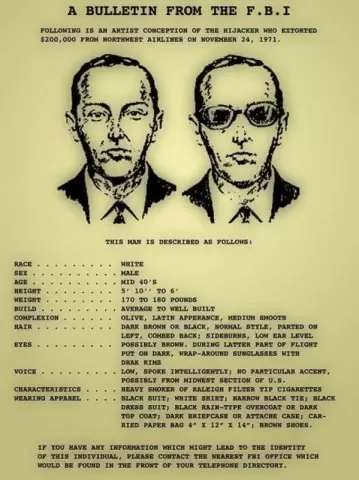 Прошло много лет, но ФБР не смогло закрыть это дело. Агентство проверило массу версий, но безуспешно. Мнения экспертов разделились: одни полагают, что Купер погиб при прыжке, другие уверены в том, что он сбежал, возможно с помощью сообщника. Неизвестно, что произошло с ним – возможно, это действительно сценарий для захватывающего триллера.