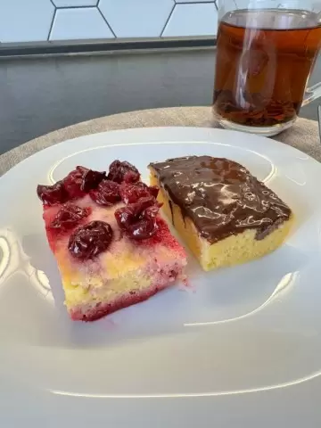 Позаботьтесь о своей фигуре, наслаждаясь сладким! Новый рецепт пирожного идеально подходит для тех, кто стремится соблюдать здоровое питание, но не хочет отказываться от десертов. Это быстрое и вкусное блюдо можно легко превратить в две вариации — с вишней и шоколадом, все это займет всего 10 минут вашего времени.