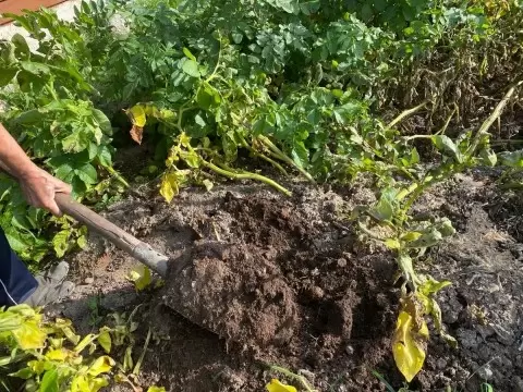 - Механические повреждения: При выкапывании картофеля с помощью лопаты или вилок клубни могут повредиться, что запускает процесс окисления и вызывает потемнение.