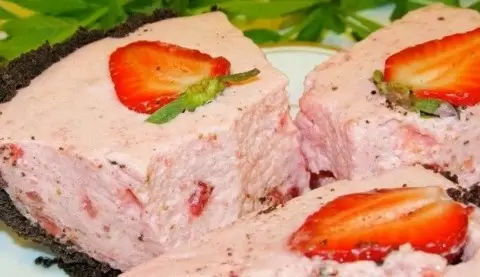 Начинку заливают в уже подготовленную основу из печенья и ставят в холодильник на 1 час. Десерт украшают по желанию перед подачей, и он превращается в настоящий праздничный шедевр, который удивит гостей своим легким вкусом и ярким ароматом!