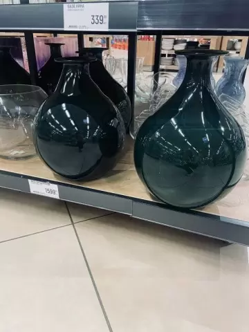 - Огромные вазы из бутылочного стекла: Этот элемент станет фокусной точкой в комнате, позволяя создать стильную композицию с веточками или сухоцветами.