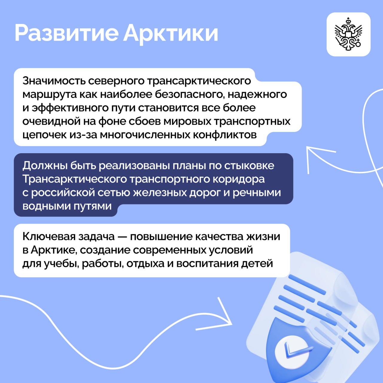 Основной темой обсуждения стало развитие Арктической зоны России и Трансарктического транспортного коридора. Участники также рассмотрели вопросы оказания бесплатной юридической помощи гражданам, обеспечения интернетом малых населенных пунктов от 100 до 1 000 жителей и ограничения работы мобильного интернета в связи с угрозой атак БПЛА в крупных городах страны.