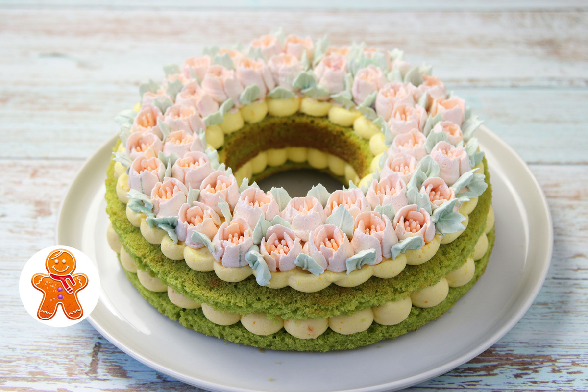 Представляем вашему вниманию рецепт великолепного торта, который выполнен в ярких весенних оттенках. Этот изысканный десерт сзелёным бисквитом на основе шпината и освежающим кремом из апельсинового сока порадует вас и ваших близких. Для украшения можно использовать не только белково-масляной крем, но и свежие фрукты, ягоды или сладости по вашему вкусу.